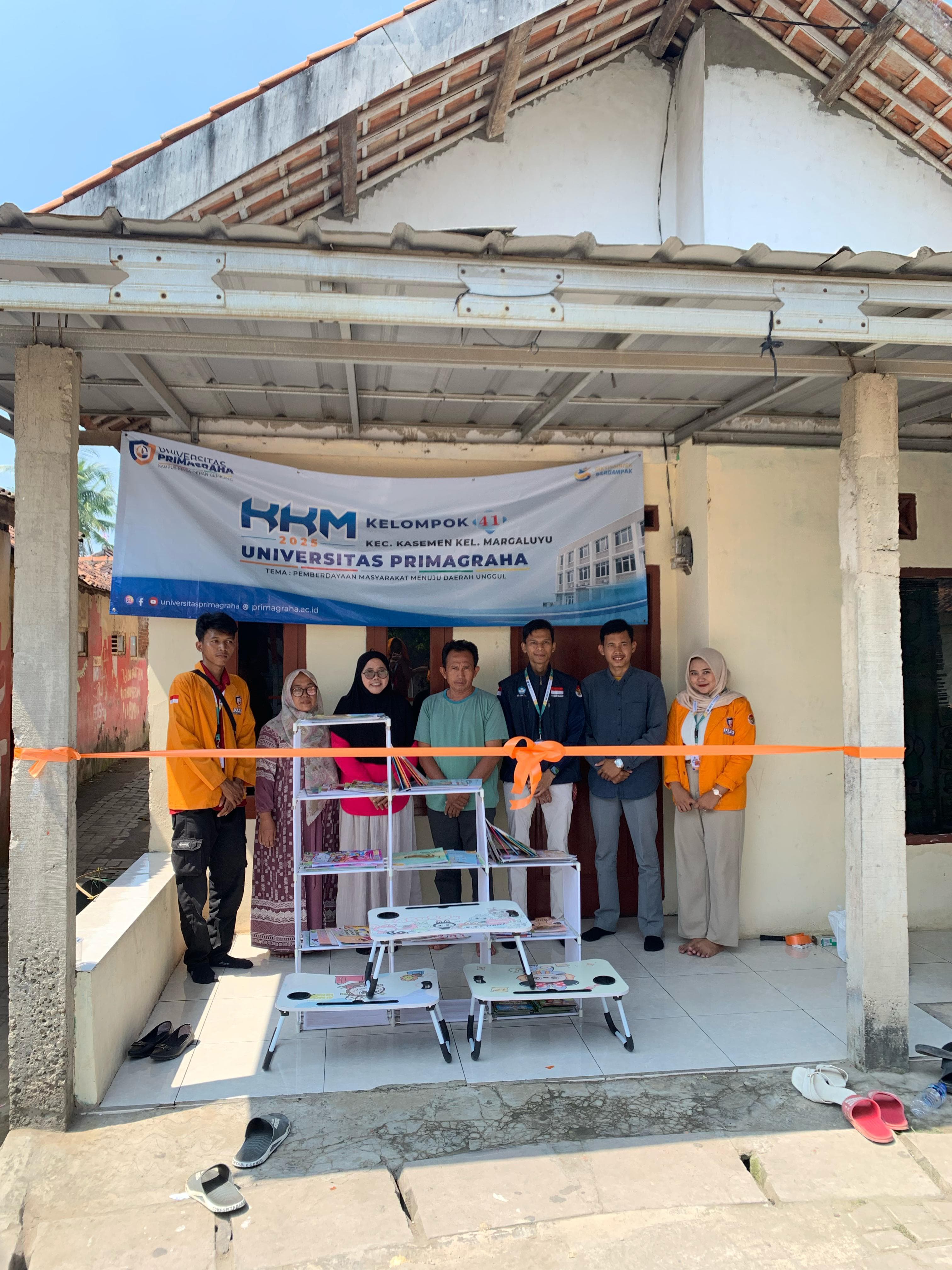 INFORADAR.ID - Mahasiswa Kuliah Kerja Mahasiswa (KKM) Kelompok 41 Universitas Primagraha meresmikan pendirian Pojok Baca Margaluyu, sebuah ruang baca sederhana yang diperuntukkan bagi warga Kampung Margaluyu, Kelurahan Margaluyu, Kecamatan Kasemen, Kota Serang, Banten.