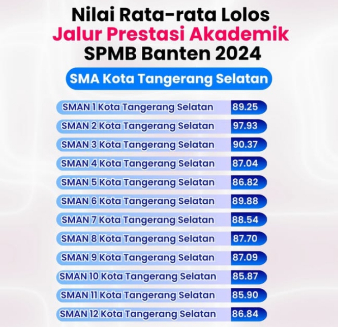 Nilai rata-rata yang lolos jalur prestasi SPMB Banten di SMAN Kota Tangerang Selatan 2024-@anaksmatangerang-Instagram